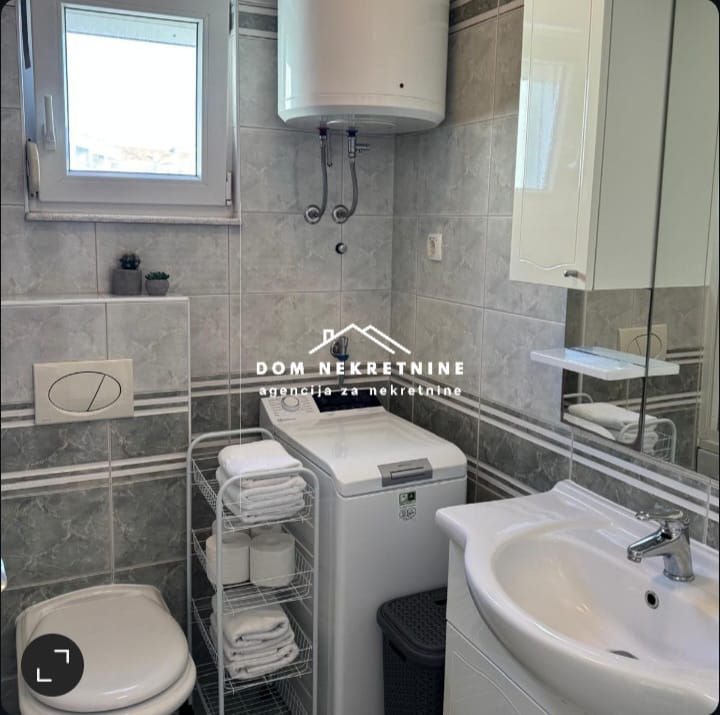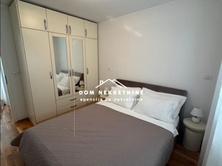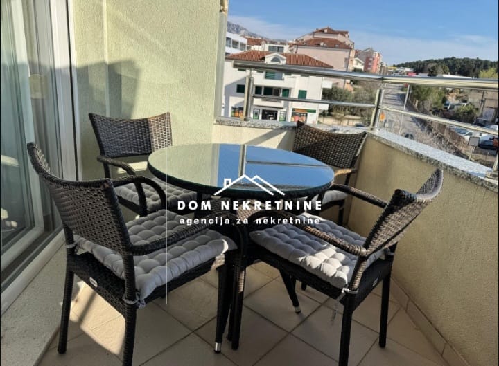 U Makarskoj se dugoročno cijele godine iznajmljuje trosoban stan stambene površine 75 m2. Sastoji se od dvije spavaće sobe, dnevnog boravka sa blagovaonicom, kuhinje, kupaonice, ulaznog dijela i balkona. Garažno mjesto je uključeno u cijenu. Stan se nalazi u blizini trgovačkog centra Spot Makarska, Lidl trgovine, Makarske rive. Orijentacija stana: jug
